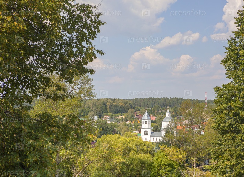 Верея, Россия. Вид на Заречье, реку Протва и Церковь Богоявления Господня