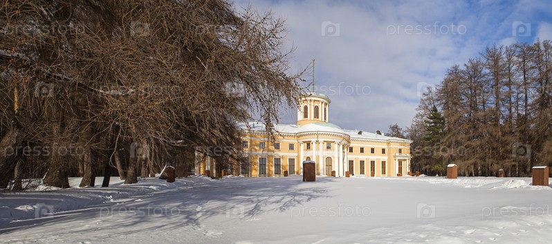 Усадьба Архангельское. Вид на усадебный дом зимним солнечным днем