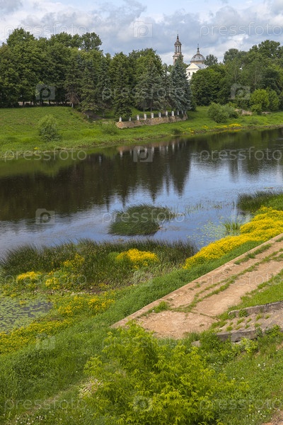 Город Торжок. Вид с Тверской набережной на Борисоглебской монастырь