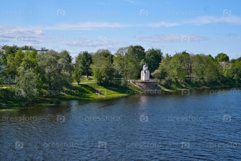 Псков, Россия. Ольгинская часовня на берегу реки Великой