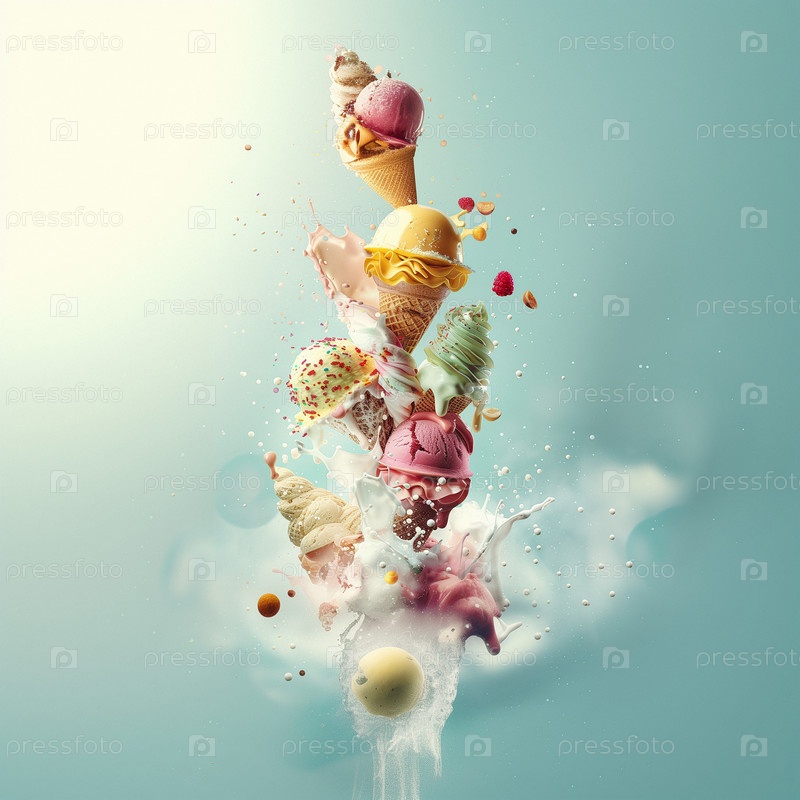 Много вкусного и красивого мороженого. Летний десерт. Плакат, меню