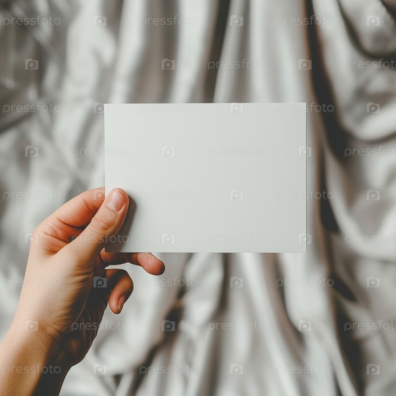 Рука держит маленькую белую наклейку. Макет для этикеток, рекламы, маркетинга