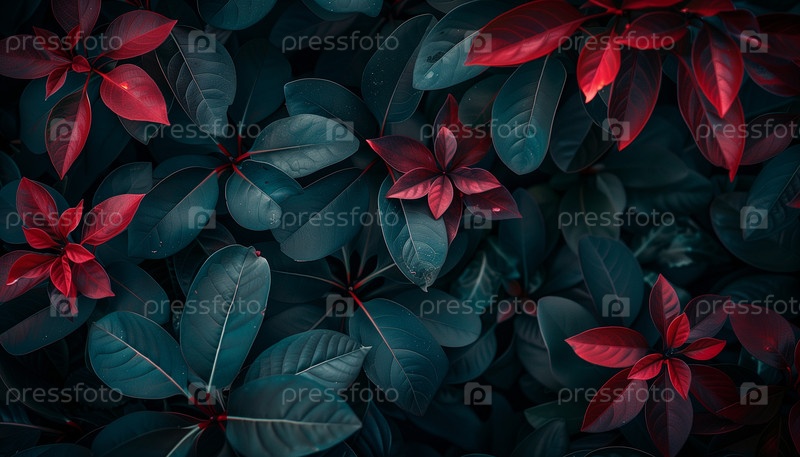 Мрачные темно-синие и красные листья. Профессиональный стоковый фон