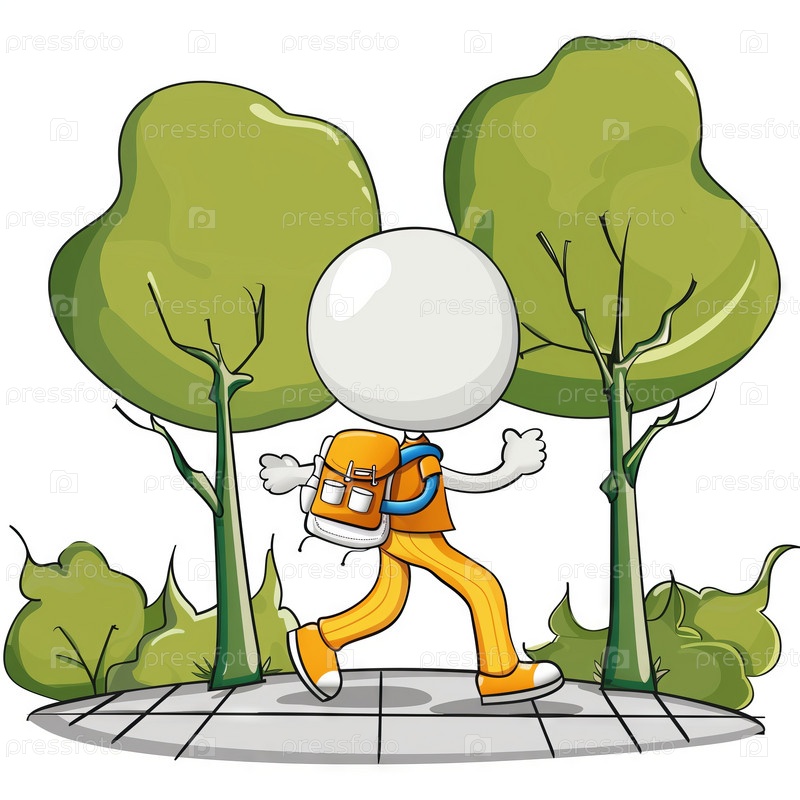 Стикмен гуляет в парке, изолированный на белом фоне