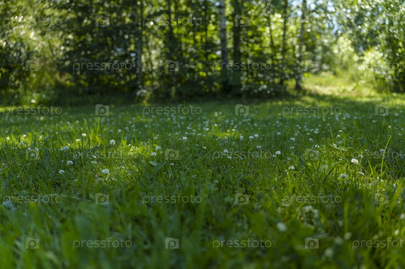 Зеленая трава и деревья в солнечный день