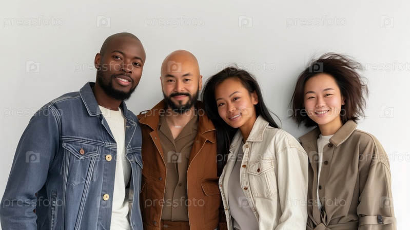 Разнообразная группа из четырех человек, улыбающихся вместе