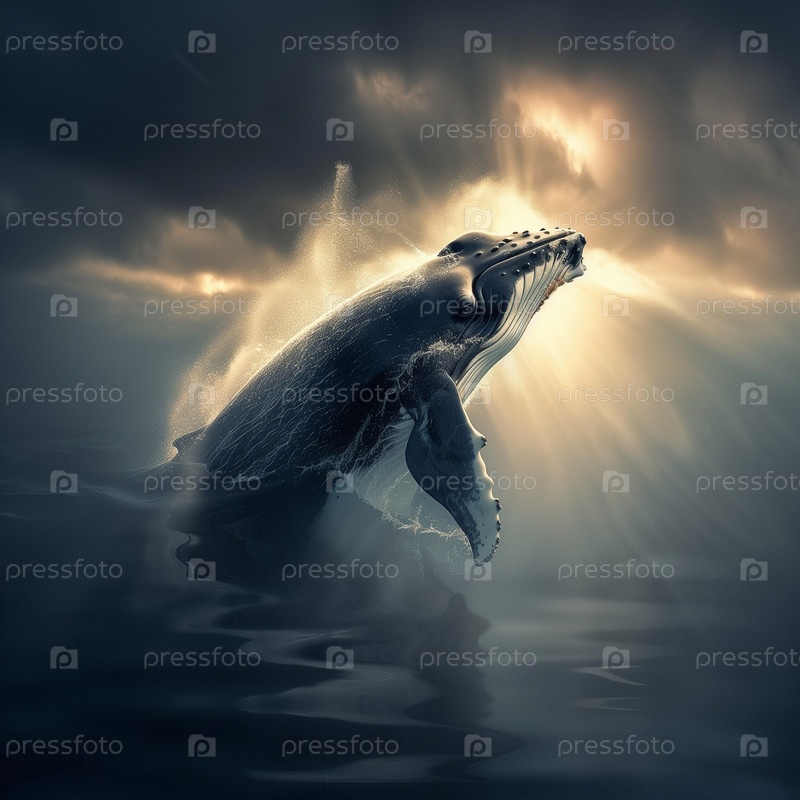 Потрясающе красивый кит в океане на закате