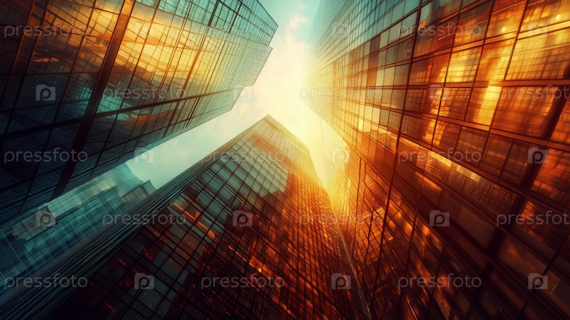 Солнечный свет отражается от современных небоскребов в футуристическом городе