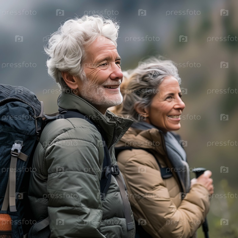 Пожилая пара отправляется в поход в горы
