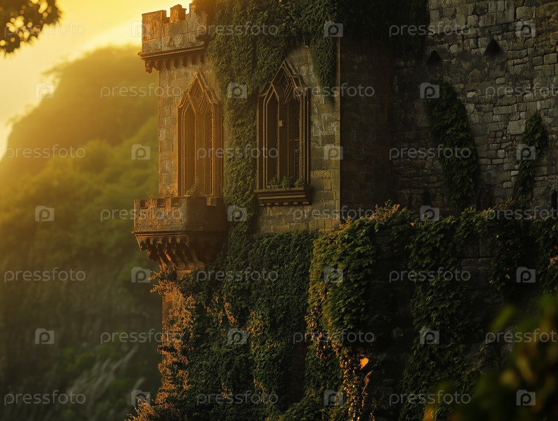 Древний замок, возвышающийся на скале, покрытой зеленью