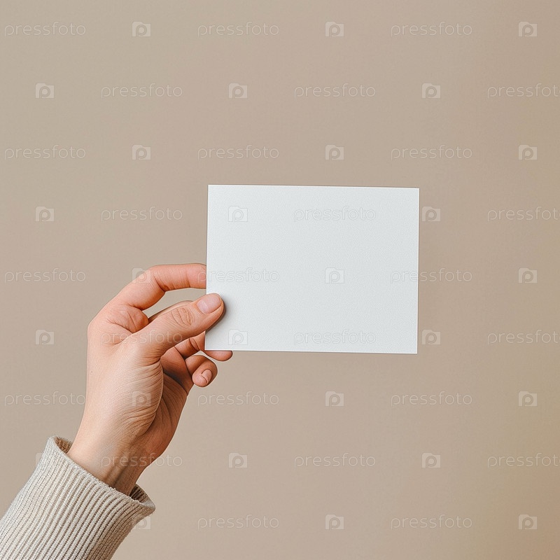 Рука держит маленькую белую наклейку. Макет для этикеток, рекламы, маркетинга