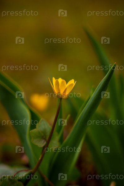 Желтый цветок крупным планом. Пробуждение природы. Весенние цветы. Чистяк весенний