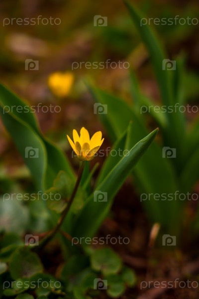 Желтый цветок в крупном плане Пробуждение природы Чистая весна, или Летовой лютик (лат. Ranunculus ficaria)