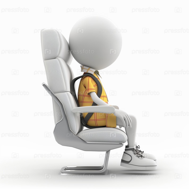 Стикмен сидит в кресле самолета, изолированный на белом фоне