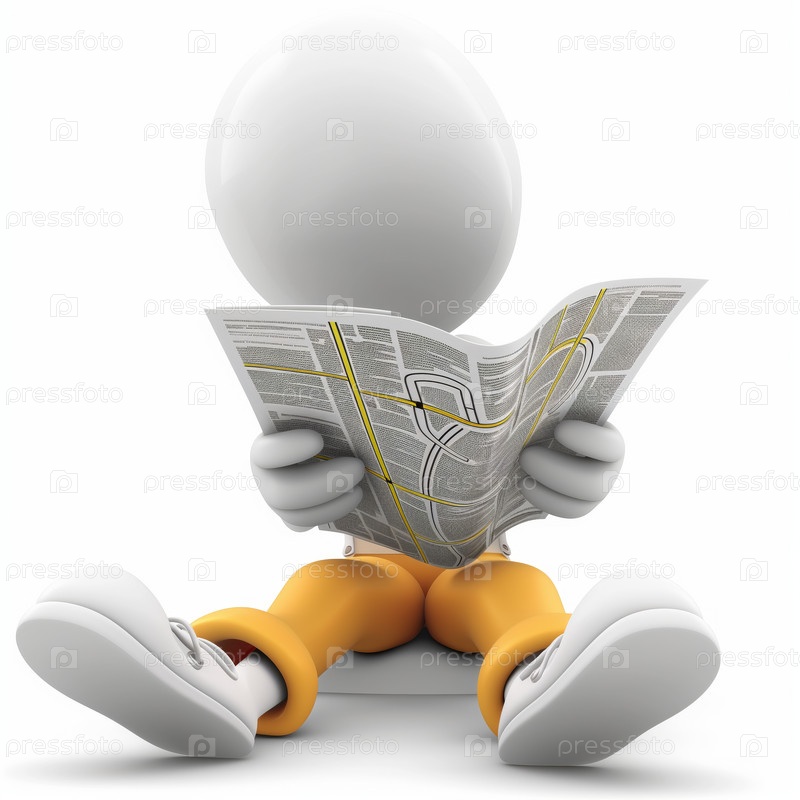 Стикмен читает газету, изолированный на белом фоне