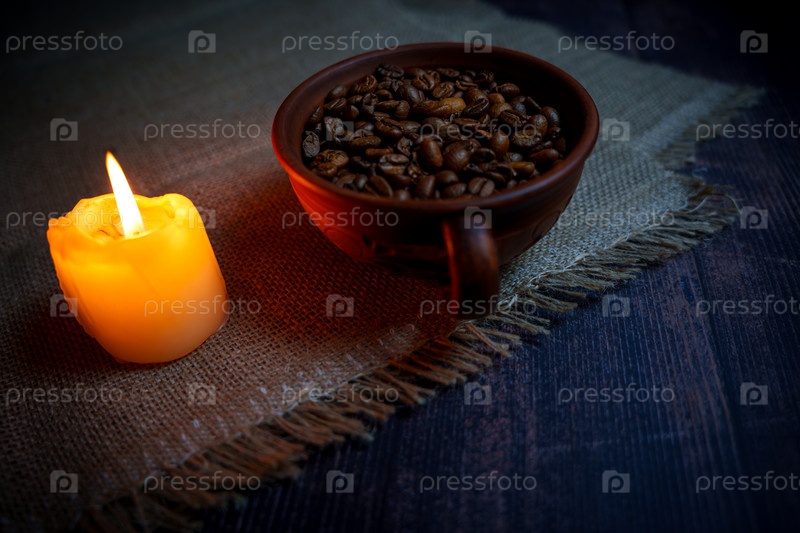 Кофейные зерна в глиняной кружке