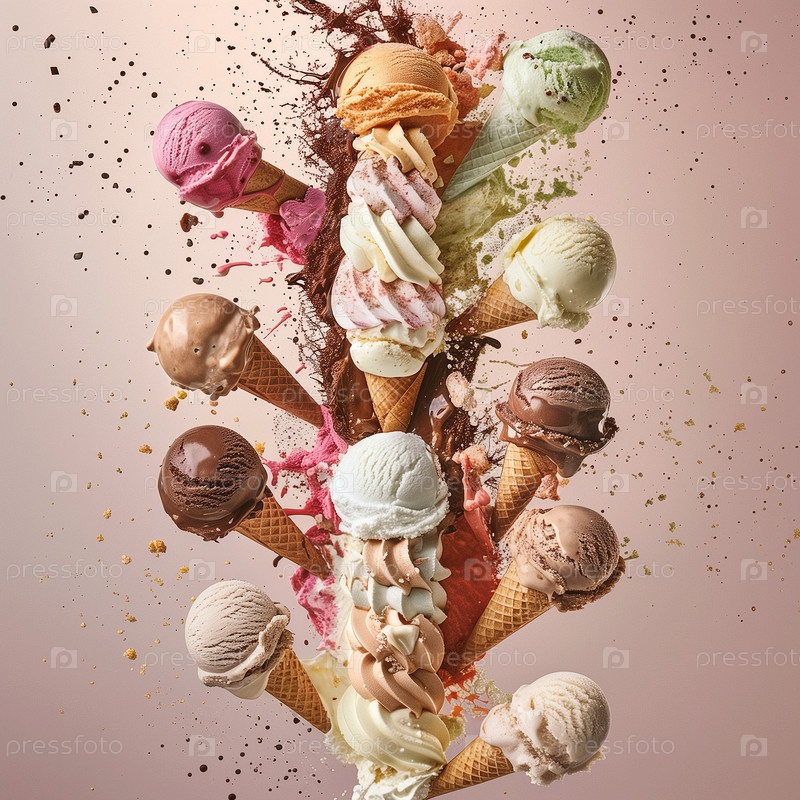 Много вкусного и красивого мороженого. Летний десерт. Плакат, меню