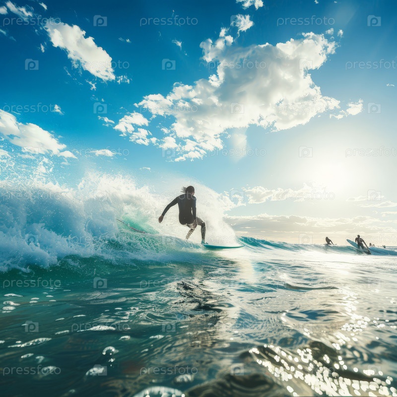 Серфер покоряет волну на закате
