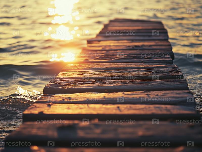 Деревянный пирс, уходящий в океан на закате