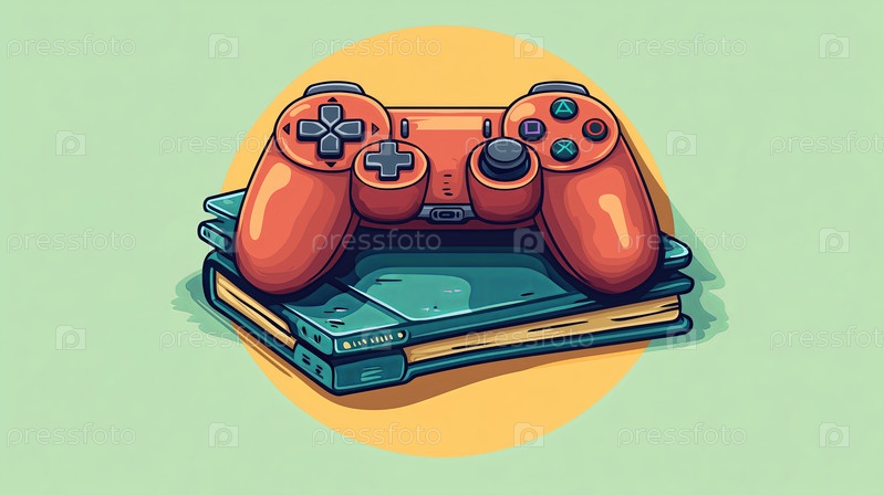 Красный игровой контроллер на иллюстрации сложенных книг
