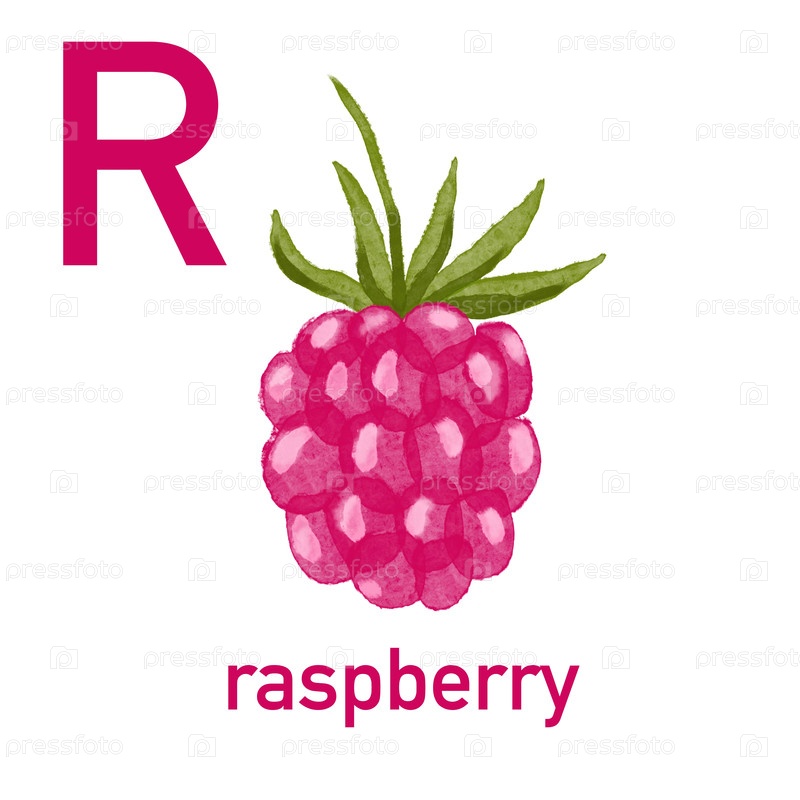 Акварельный английский алфавит из милых фруктов и овощей. Акварельная иллюстрация еды. Вегетарианский алфавит. Назад в школу. малина