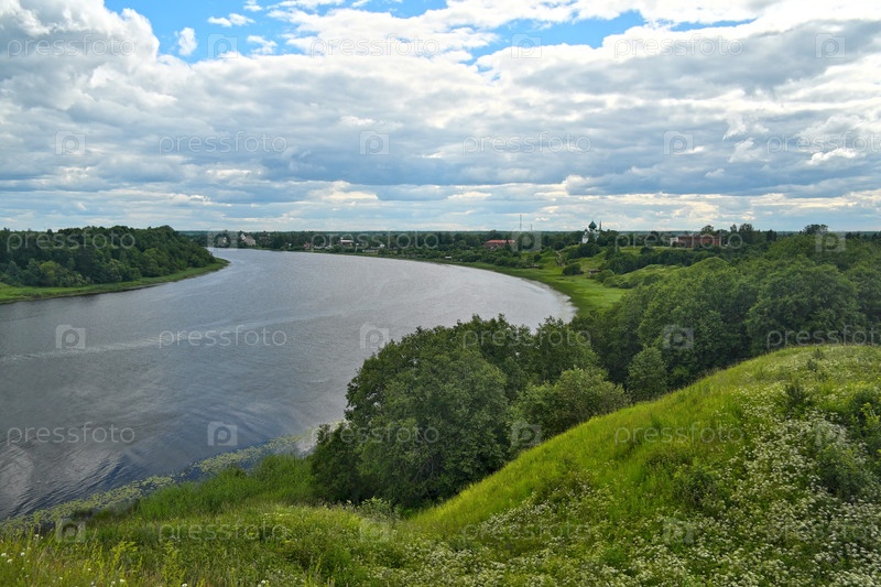 Вид на реку Волхов от Олегова кургана вблизи от села Старая Ладога красивым летним днем