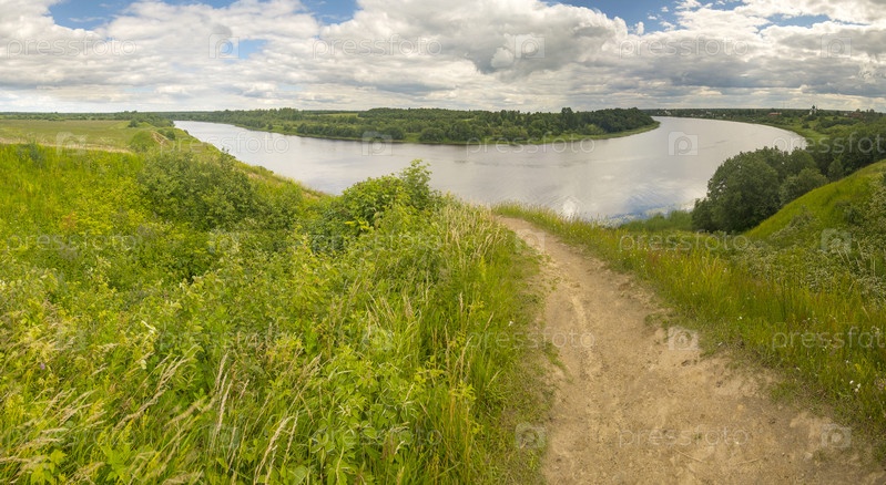 Вид на реку Волхов от Олегова кургана вблизи от села Старая Ладога красивым летним днем