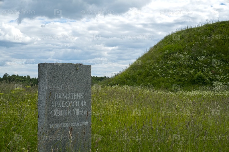 Вид на древнюю сопку (так называемый «Олегов курган») вблизи от села Старая Ладога красивым летним днем