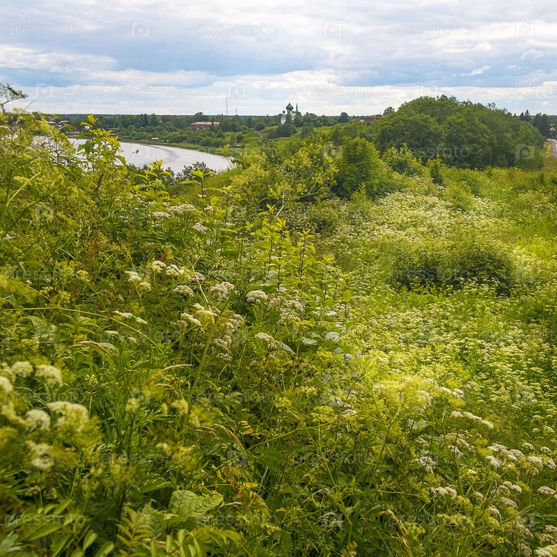 Вид на реку Волхов от Олегова кургана вблизи от села Старая Ладога красивым летним днем