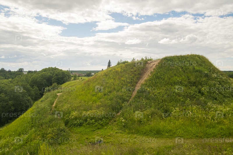 Вид на древнюю сопку (так называемый «Олегов курган») вблизи от села Старая Ладога красивым летним днем