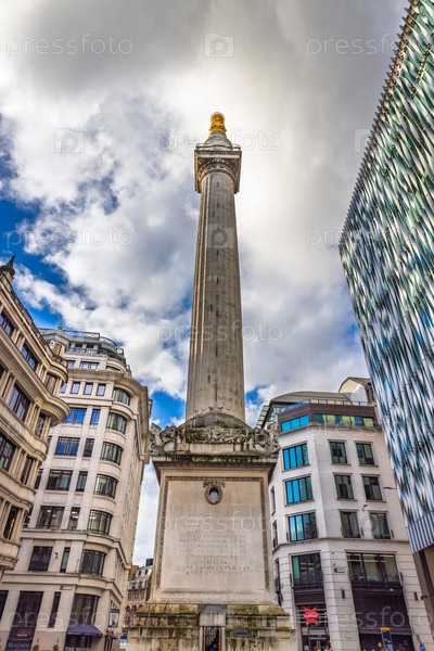 Исторический памятник Великому лондонскому пожару в окружении городских зданий
