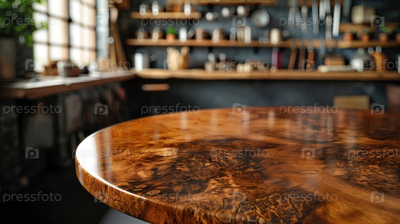 Недавно изготовленный в столярной мастерской стол со столешницей из капа