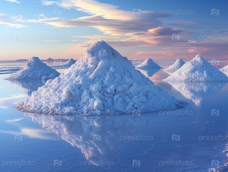 Рассол, собранный в кучи для выпаривания во время добычи соли на соляном озере
