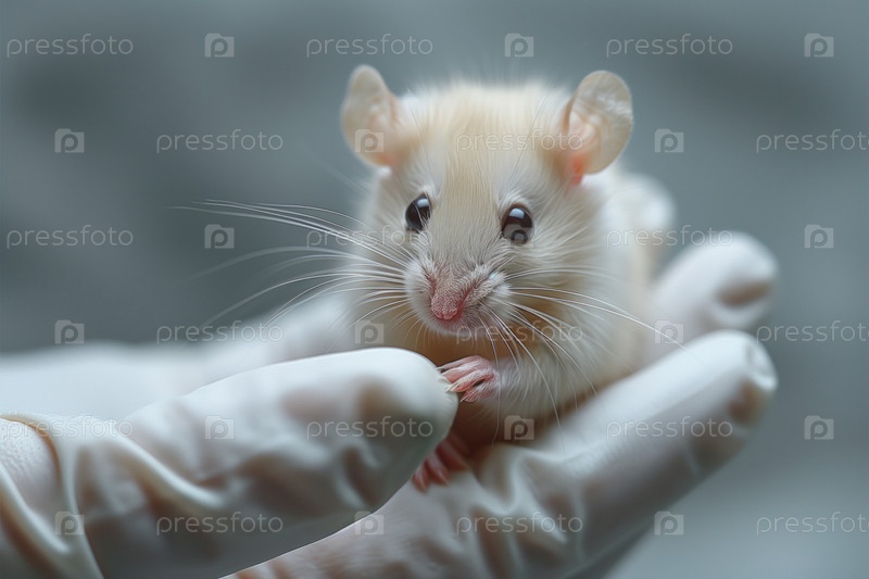 Милая мышка-палец в руках человека в защитных латексных перчатках на размытом фоне