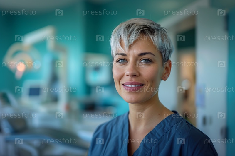 Портрет взрослой женщины-врача в кабинете стоматолога