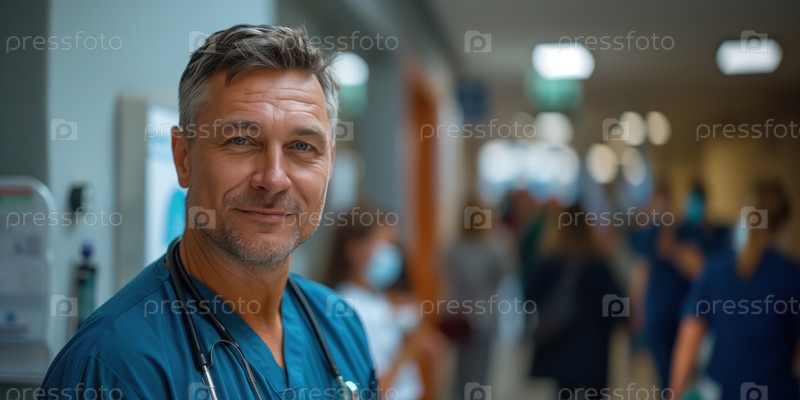 Портрет зрелого мужчины-врача со стетоскопом в больнице