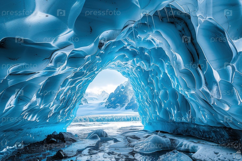 Вид из ледниковой пещеры в высокогорье