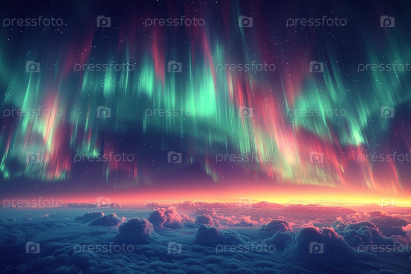 Северное сияние в небе над облаками