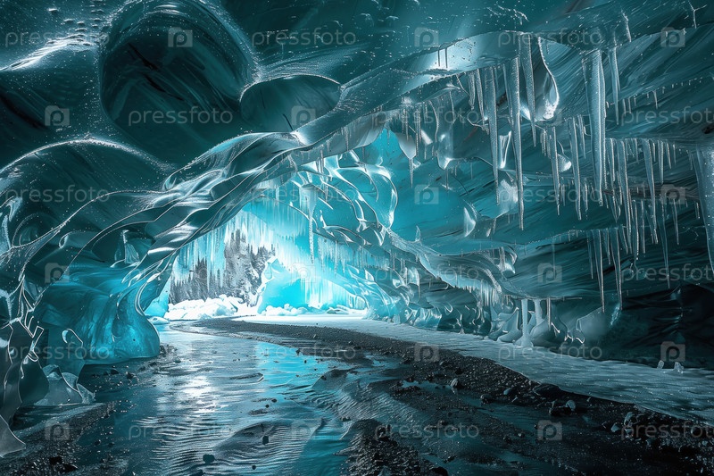Ледниковая пещера, образованная потоками воды внутри тающего ледника