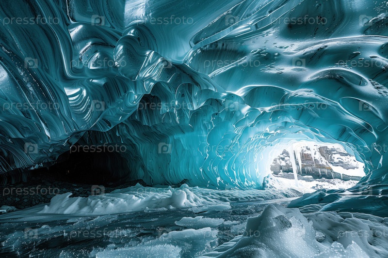 Ледниковая пещера, образованная потоками воды внутри тающего ледника