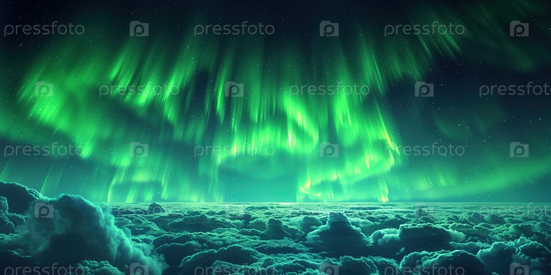 Северное сияние, северное сияние в небе над облаками