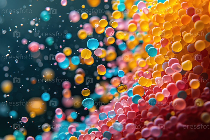 Красочные микроскопические частицы, взвешенные в воде. концепция загрязнения микропластиком