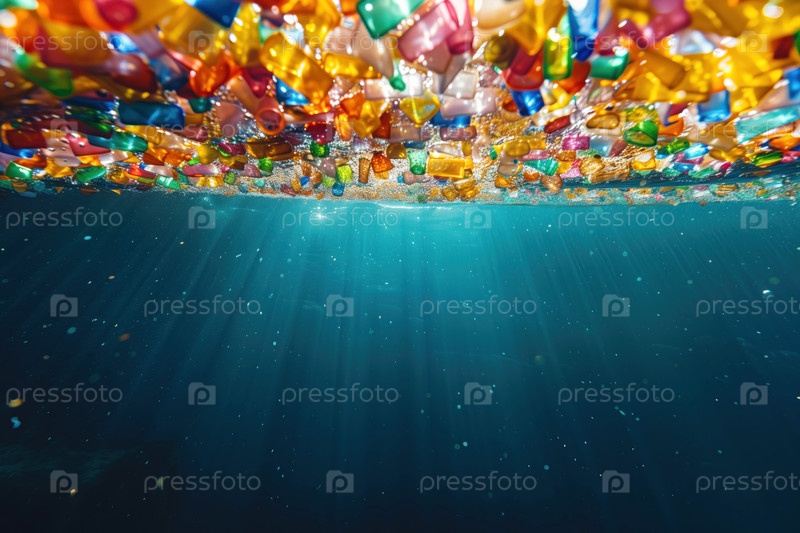 Пластиковые частицы в морской воде, пластиковый мусор, загрязнение окружающей среды