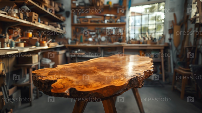 Новый дизайнерский стол со столешницей из капа в столярной мастерской