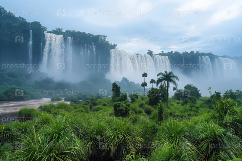 Тропический пейзаж с видом на огромный водопад