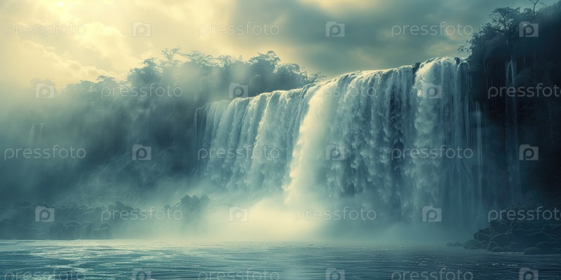 Прекрасный панорамный вид на грандиозный водопад