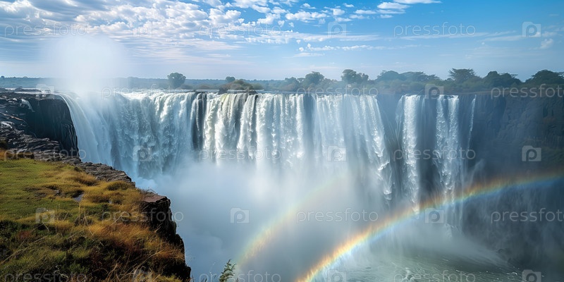 Панорамный вид на большой красивый водопад