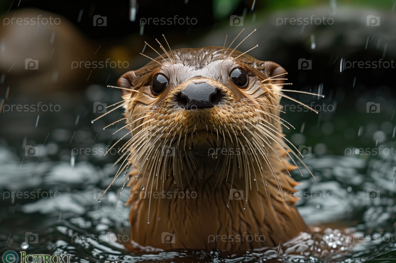 Выдра выглядывает из воды