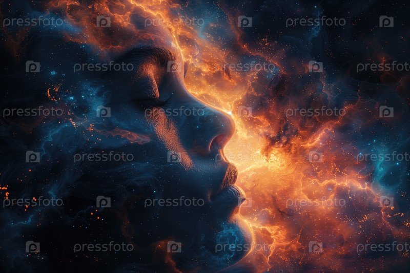 Красивое женское лицо в космосе. Научно-фантастическое искусство