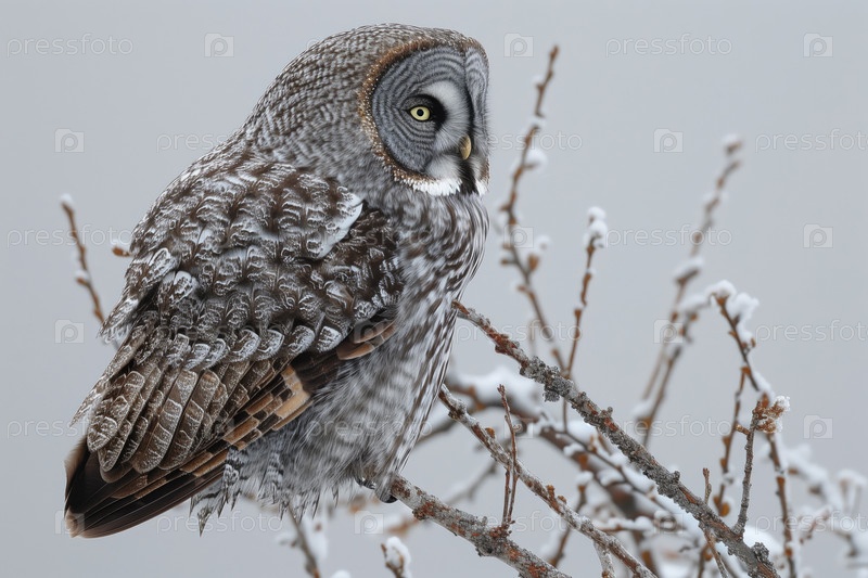 Большая серая туманность, Strix nebulosa, одинокая птица на ветке